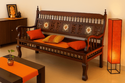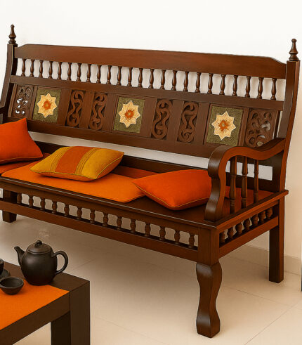 Hand-Carved Teak Wood Chettinad-Style Carved Diwan Bench