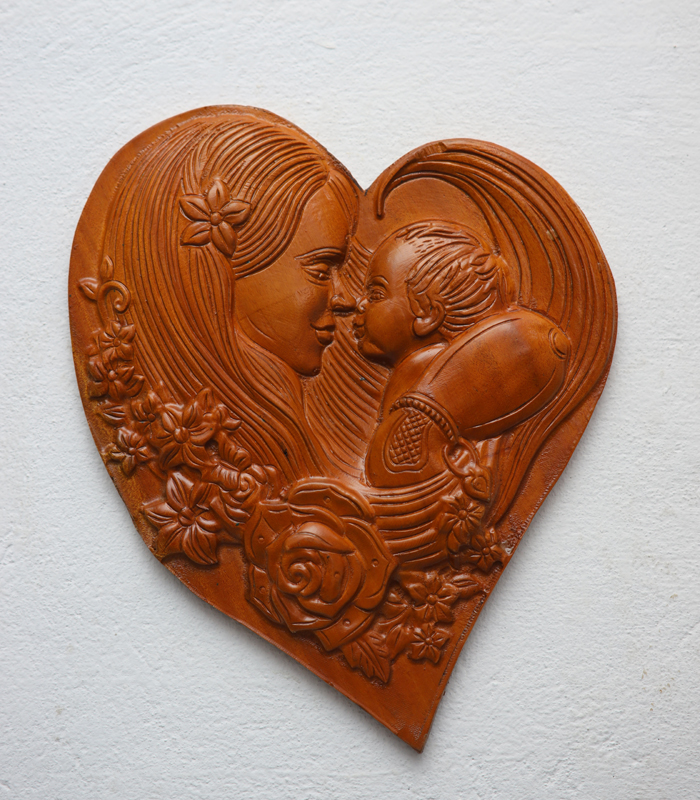 Celebrate the bond of unconditional love with this heart-shaped wooden wall art depicting a touching moment between a mother and child. Expertly handcrafted from premium teak wood, this 17×11 inch masterpiece adds emotional warmth and timeless beauty to any room. Featuring intricate floral details and smooth natural finish, this wall décor is ideal for gifting on Mother’s Day, birthdays, baby showers, or simply as a reminder of maternal love in your home. A perfect blend of tradition and emotion, this carving fits well in living rooms, bedrooms, or entryways.