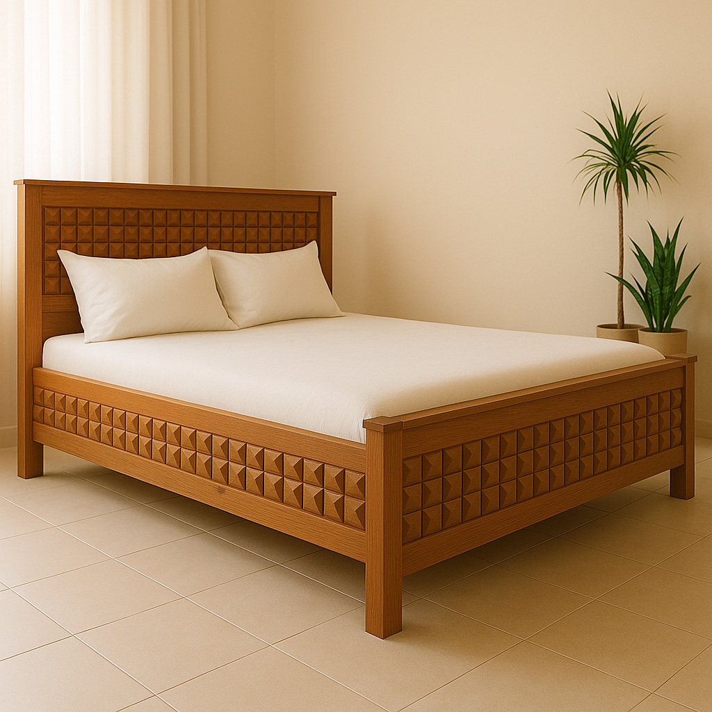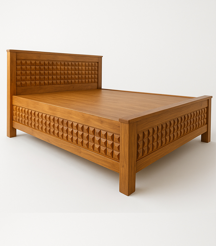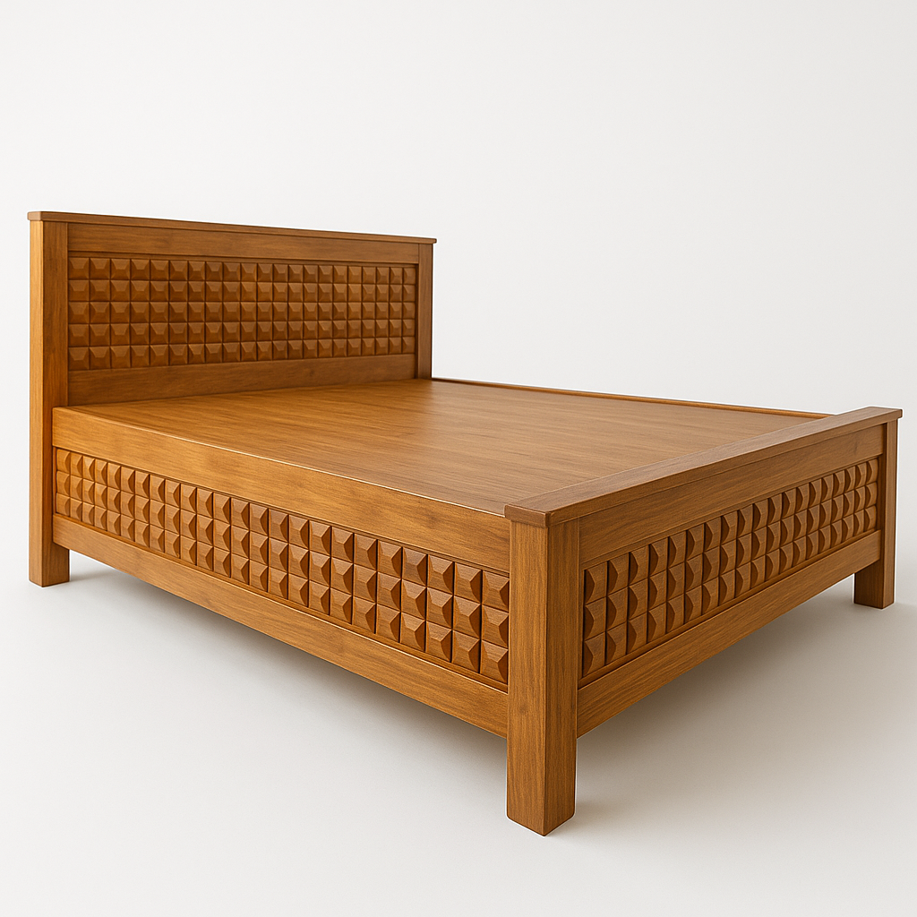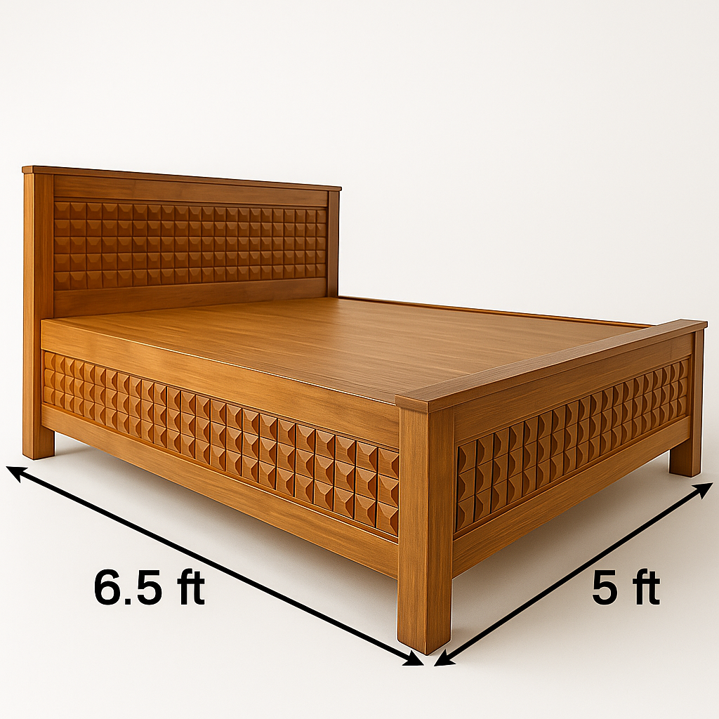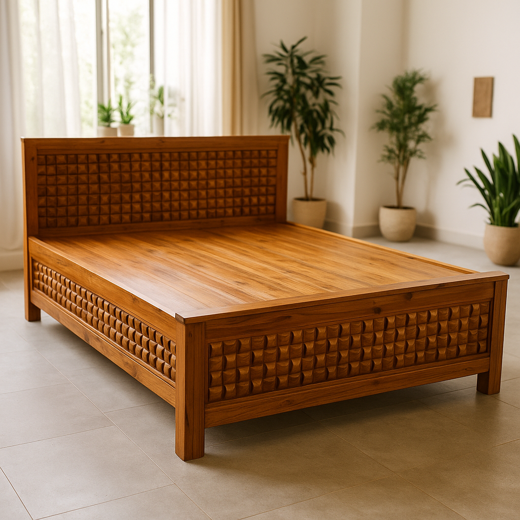 Bring home the charm of traditional craftsmanship with this beautifully handcrafted Queen Size Teak Wood Bed, featuring a unique 3D block carving design on both the headboard and footboard. Made from premium quality solid teak wood, this bed is built for durability, elegance, and long-term use.